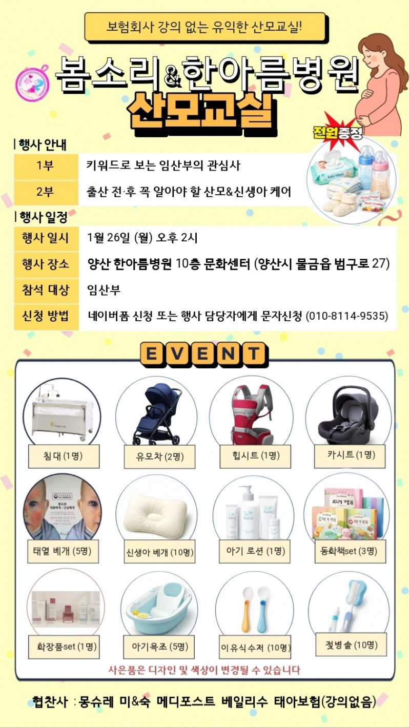 -신청방법 : 네이버폼 or 성함 /예정일 /주소 /진료병원 문자발송(010-8114-9535)