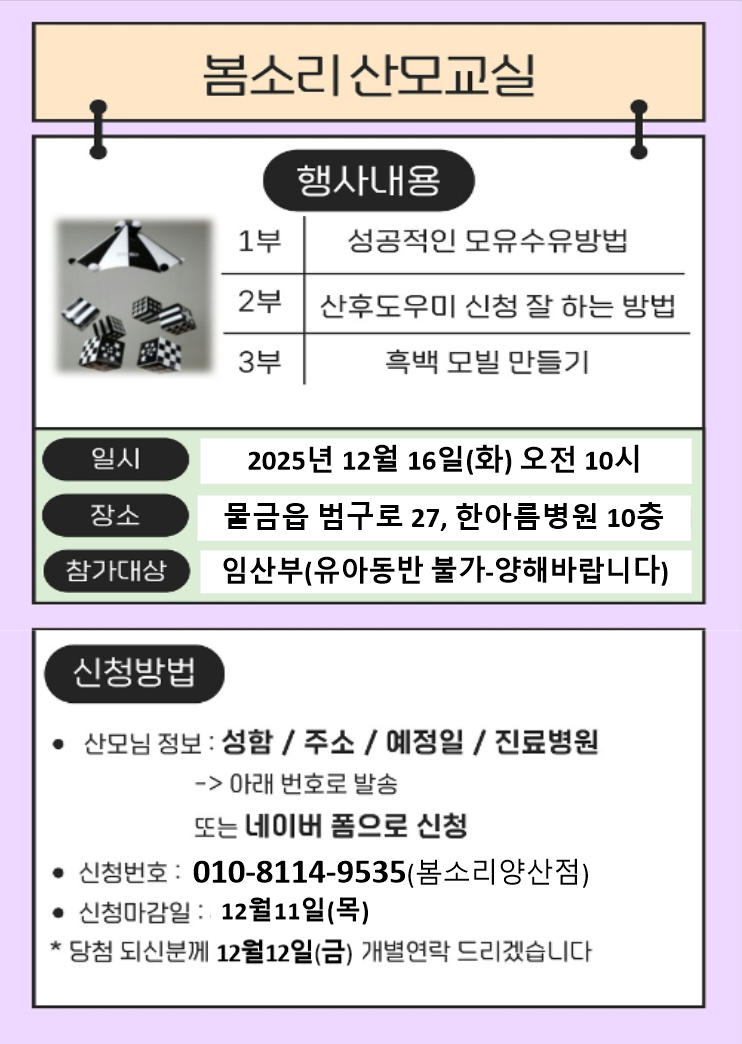 2025년 12월 [봄소리산모교실 신청안내]-양산점