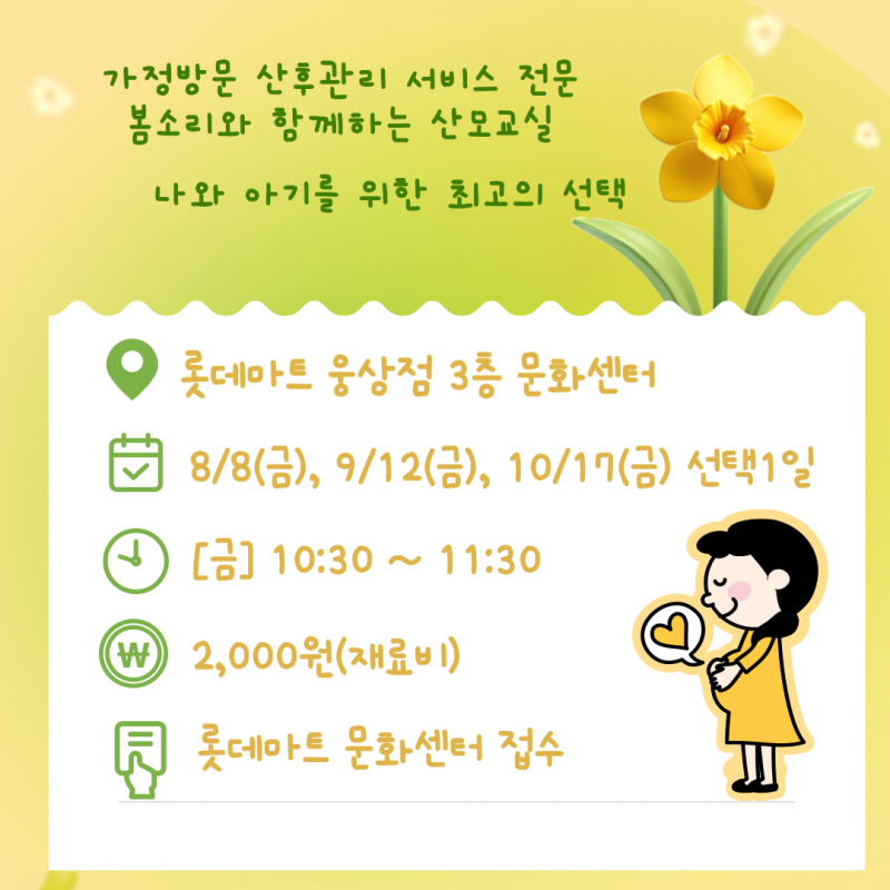 봄소리양산점 산모교실 롯데마트 웅상점에서 진행합니다.