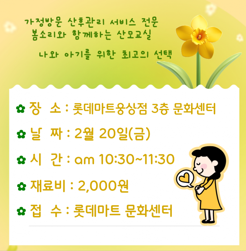 봄소리양산점에서는 롯데마트 웅상점에서 산모교실 진행합니다.